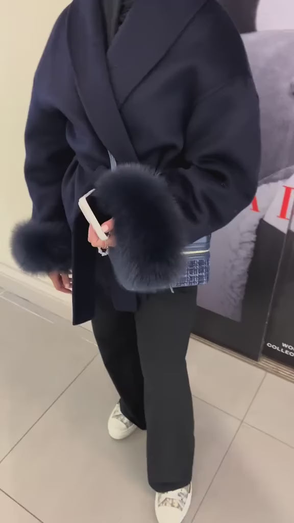 Why wear your heart on your sleeve when you can wear the most luxurious of furs on them! - 100% Wool - Short Coat - Luxury Detachable fox fur cuffs - Detachable Belt - Style your coat in 3 ways depending on your mood with detachable fur cuffs and belt. Please note due to the nature of the fur there is a chance for slight colour differences