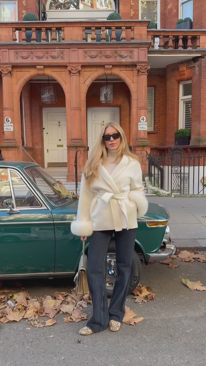 Why wear your heart on your sleeve when you can wear the most luxurious of furs on them! - 100% Wool - Short Coat - Luxury Detachable fox fur cuffs - Detachable Belt - Style your coat in 3 ways depending on your mood with detachable fur cuffs and belt. Please note due to the nature of the fur there is a chance for slight colour differences